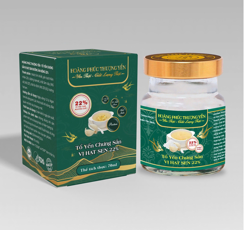 Nước tinh khiết, yến tươi thiên nhiên 22%, đường phèn, chất làm dày (INS 327, INS 401), chất ổn định (INS 331 (iii)), hương hạt sen
