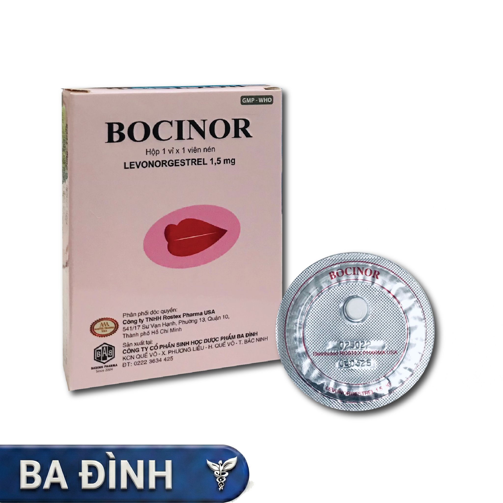 Bocinor Levonorgestrel 1.5 MG Ba Đình (Hộp 1 Vỉ x 1 Viên)