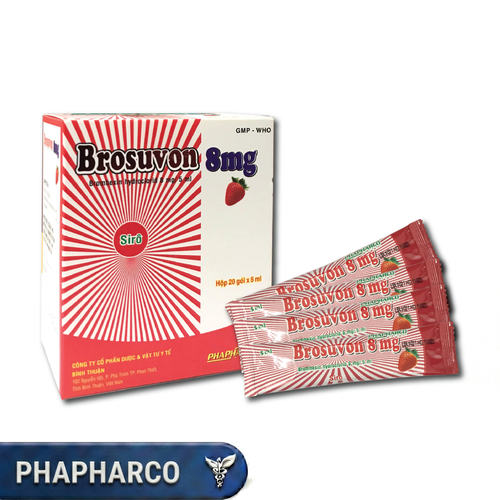 Brosuvon 8 Bromhexin 8MG/5ML Phapharco (Hộp x 20 Gói)