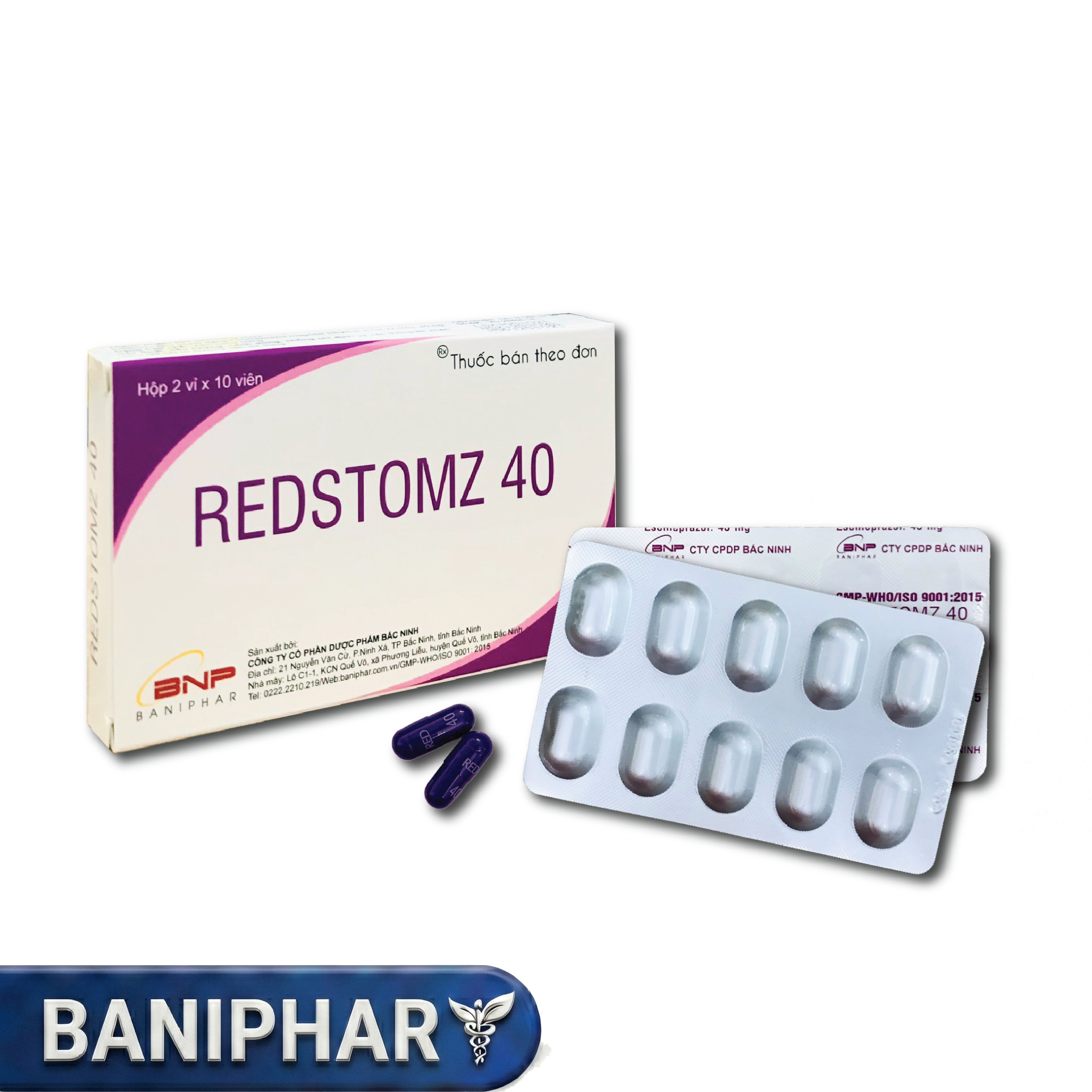 Redstomz Esomeprazol 40mg Baniphar (Hộp/2 Vỉ/10 Viên nang)