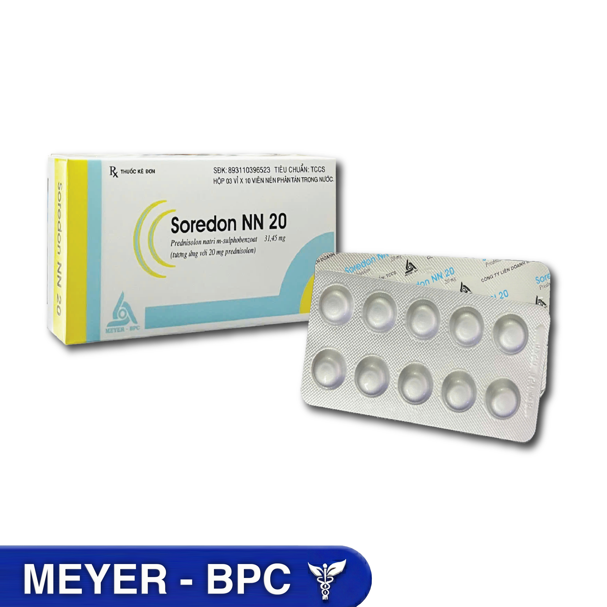 Soredon NN20 Prednisolon 20MG Meyer BPC (Hộp 3Vỉ x 10 Viên) (Predni NGỌT)