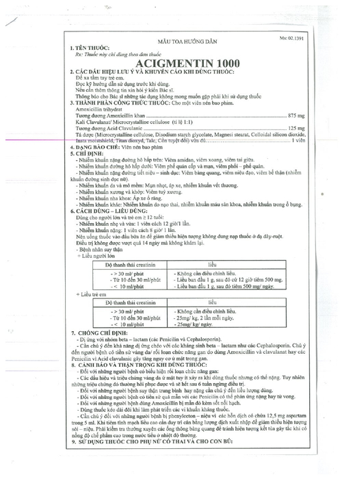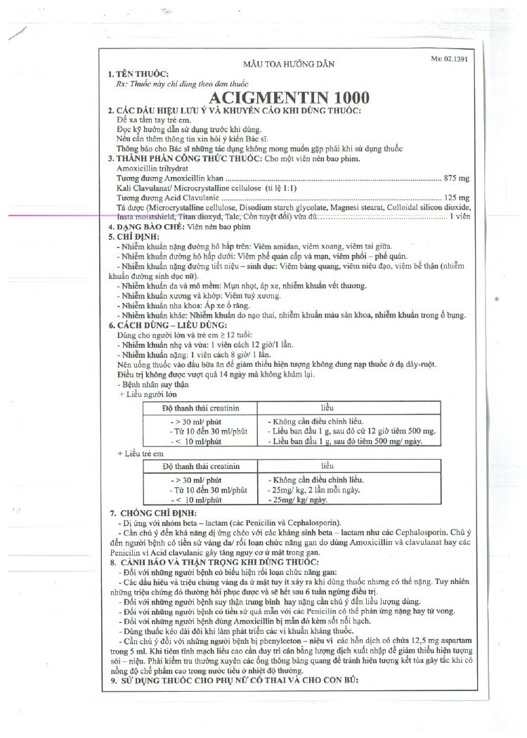 Hoạt chất - Hàm lượng | Amoxicillin 875 mg Acid Clavulanic 125 mg |