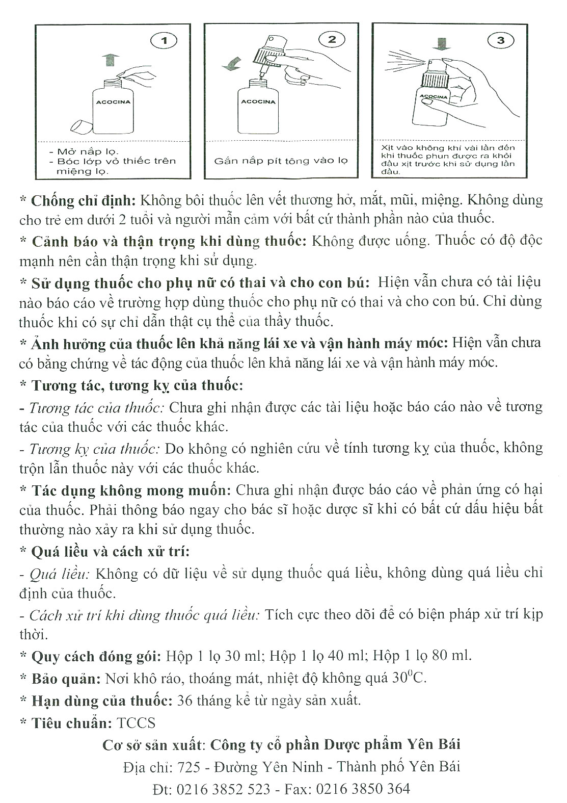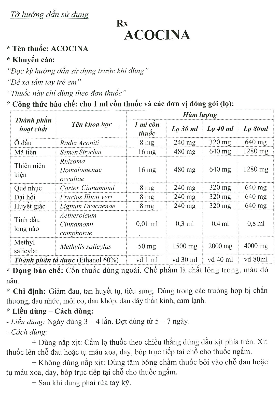 ACOCINA 40 ml Giảm đau, tiêu sưng, trong các trường hợp chấn thương, đau nhức cơ xương khớp, cảm lạnh