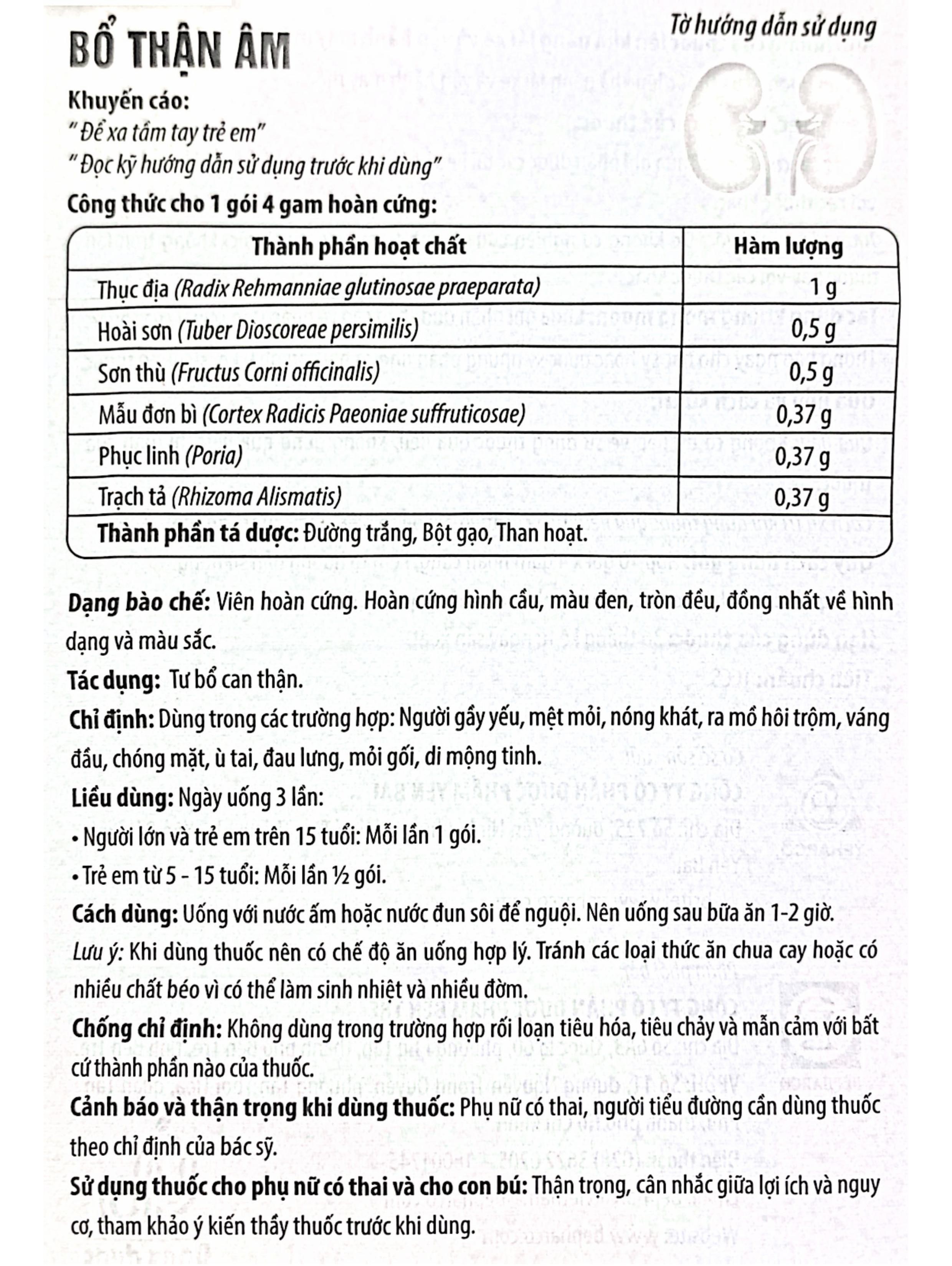 Quy cách đóng gói: Hộp 10 gói x 4 gam hoàn cứng