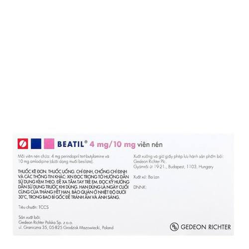 Hoạt chất - Hàm lượng: | Perindopril tert-butylamine 4 mg Amlodipine 10 mg |