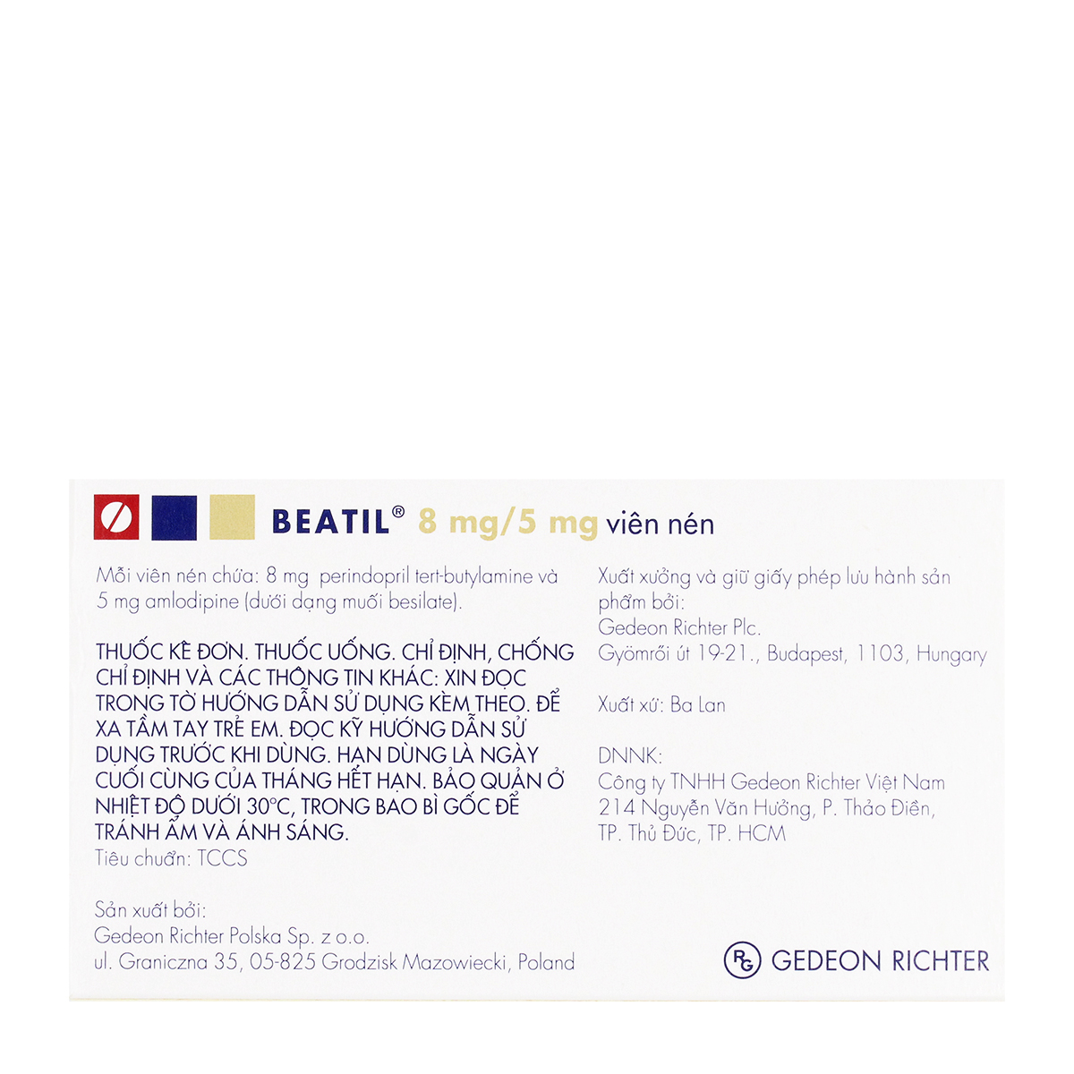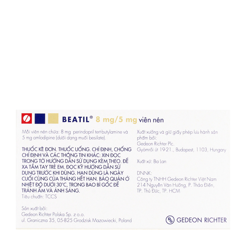 Hoạt chất - Hàm lượng: | Perindopril tert-butylamine 8 mg Amlodipine 5 mg |