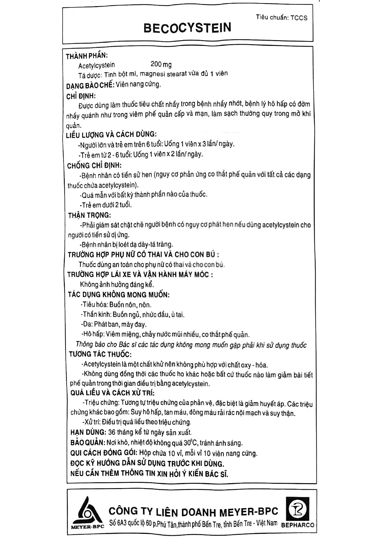 | Hoạt chất - Hàm lượng: | Acetylcystein 200 mg |
