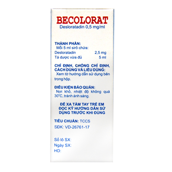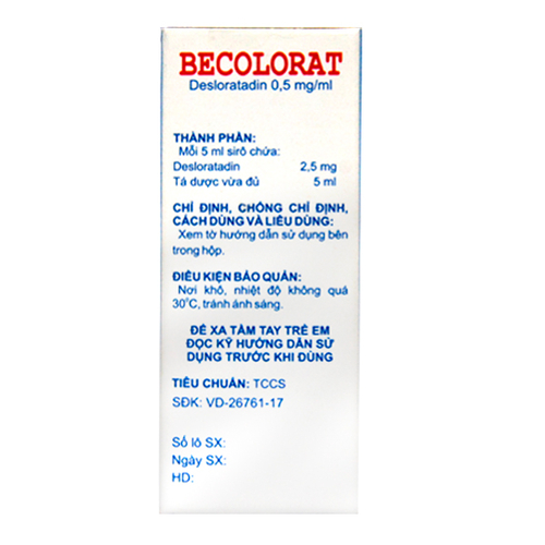 Hoạt chất - Hàm lượng: | 5 ml siro chứa Desloratadin 2,5mg |