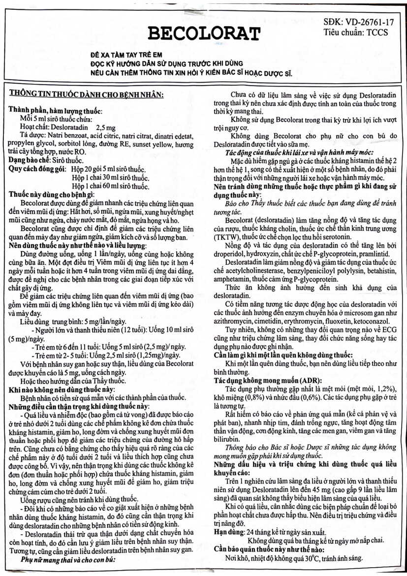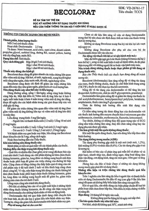 Hoạt chất - Hàm lượng: | 5 ml siro chứa Desloratadin 2,5mg |