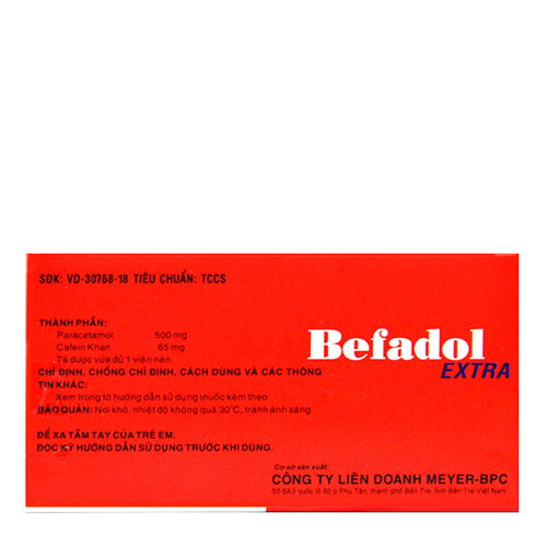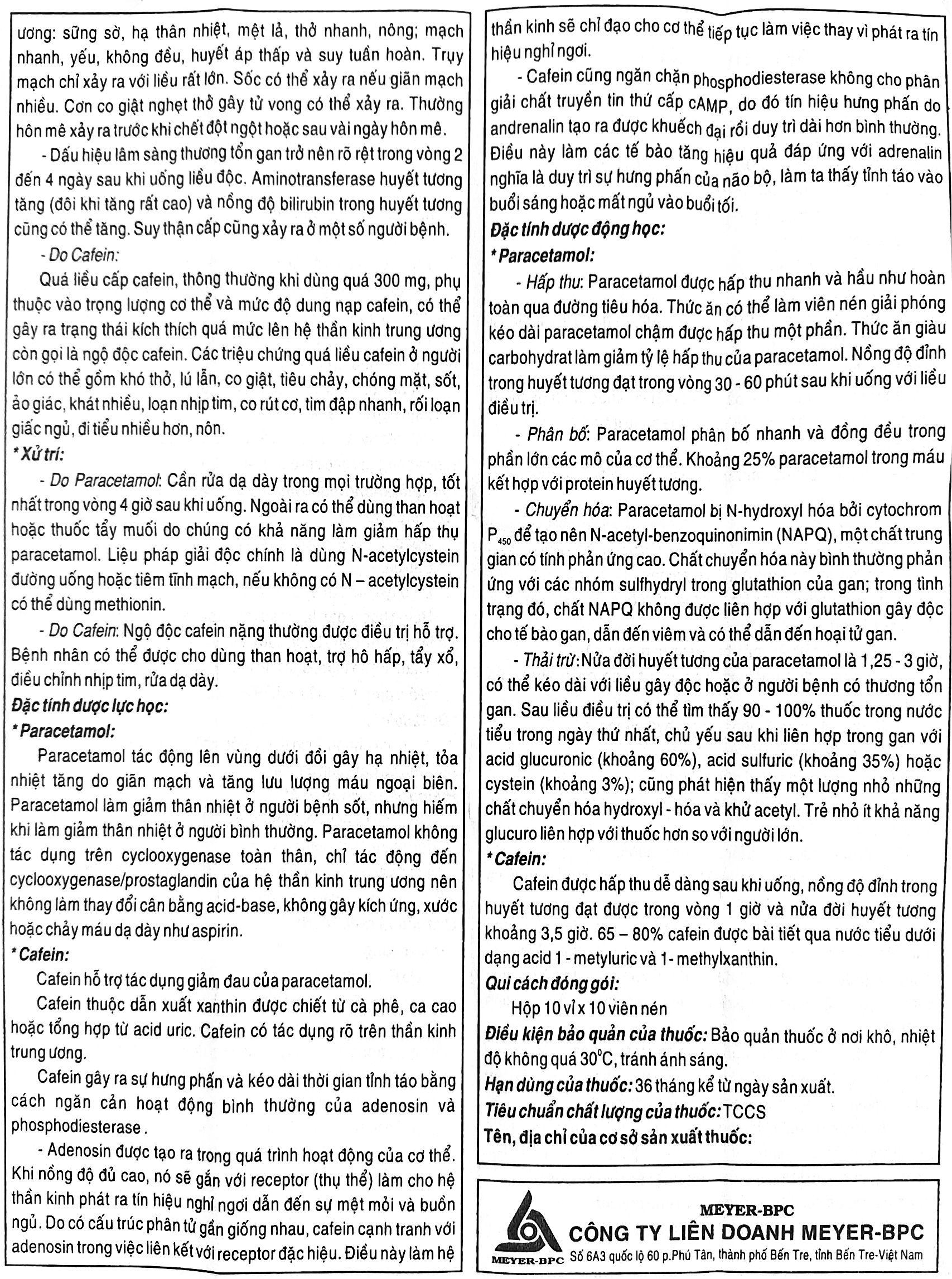 | Hoạt chất - Hàm lượng: | Paracetamol 500mg, cafein 65mg |