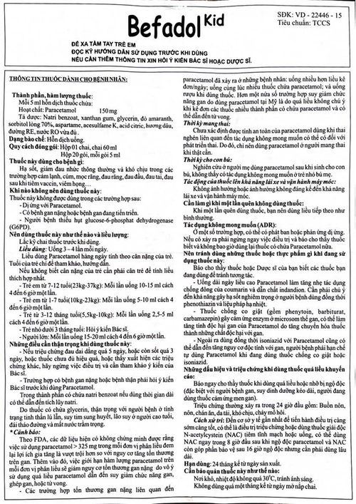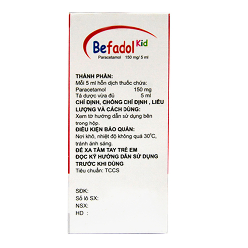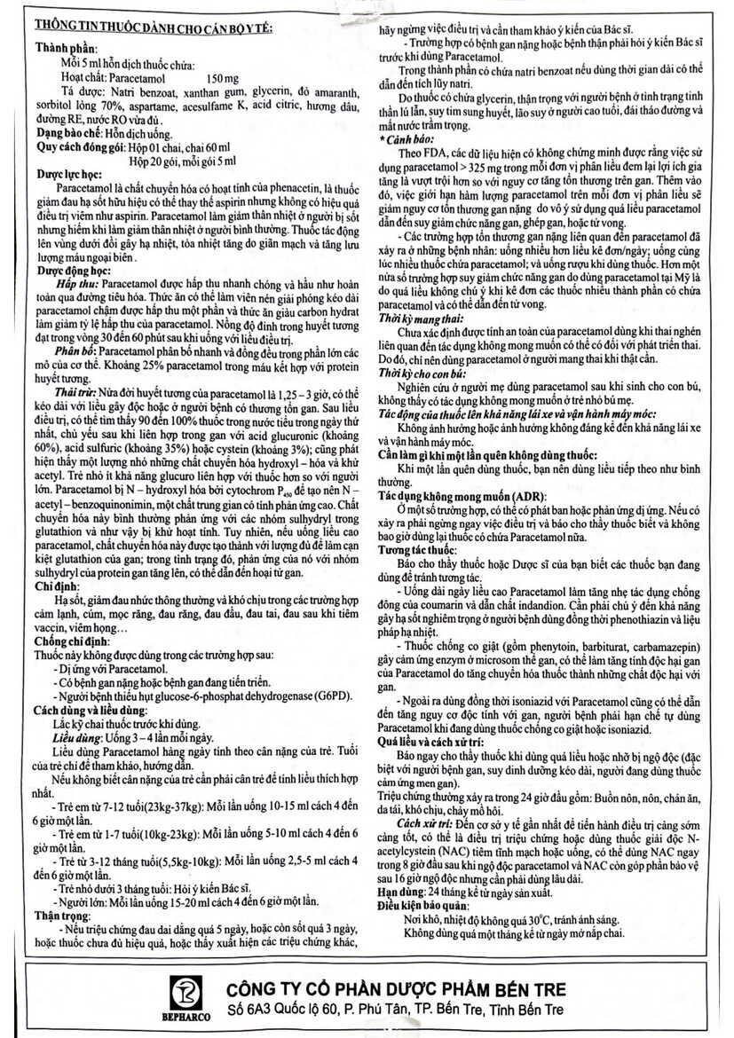 Hoạt chất - Hàm lượng: | 5 ml siro chứa Paracetamol 150 mg |