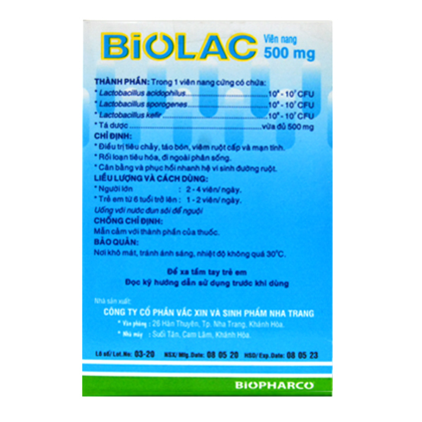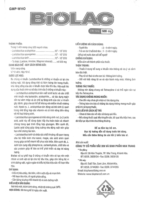 Hoạt chất - Hàm lượng: | Men vi sinh Lactobacillus: L.acidophilus: 10 triệu CFU L.sporogenes: 10 triệu CFU L.kefir: 10 triệu CFU |