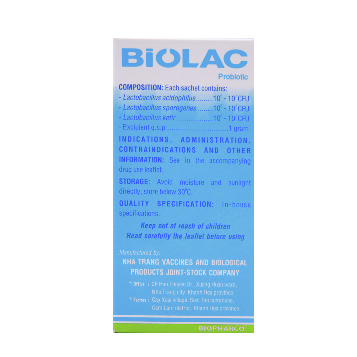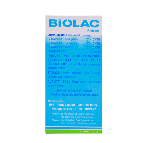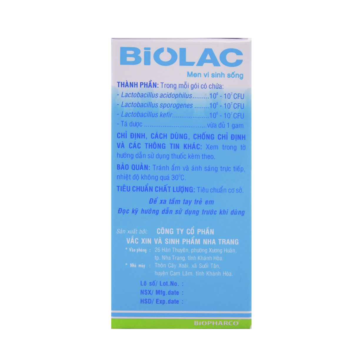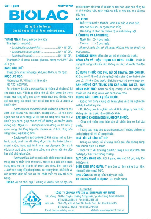 Hoạt chất - Hàm lượng | Lactobacillus acidophilus...106 – 107 CFU Lactobacillus sporogenes...106 – 107 CFU Lactobacillus kefir...106 – 107 CFU |