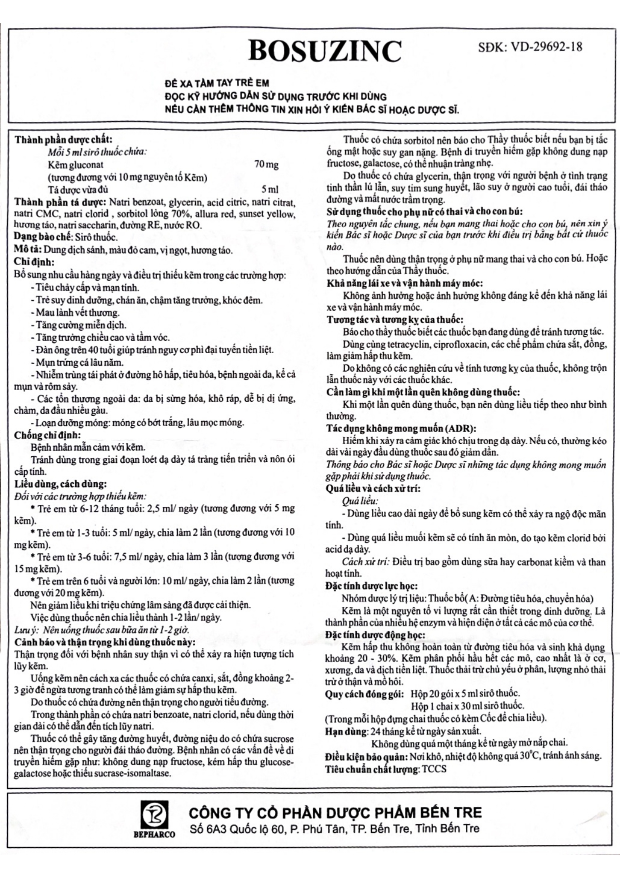 Hoạt chất - Hàm lượng: | Mỗi 5 ml siro chứa: kẽm Gluconat 70 mg |
