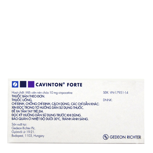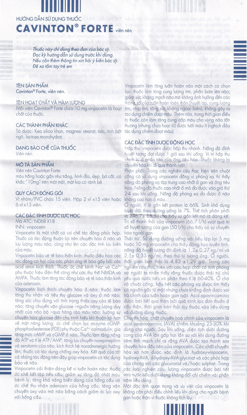 | Hoạt chất - Hàm lượng: | Vinpocetine 10 mg |