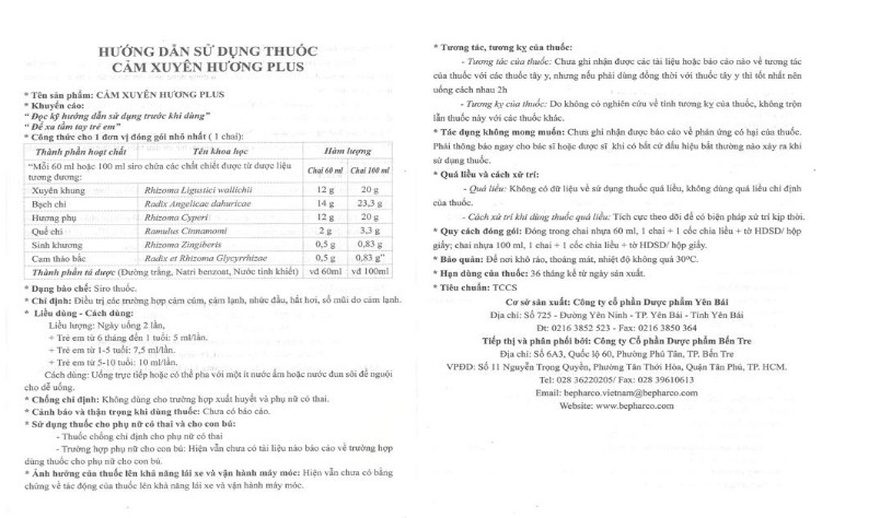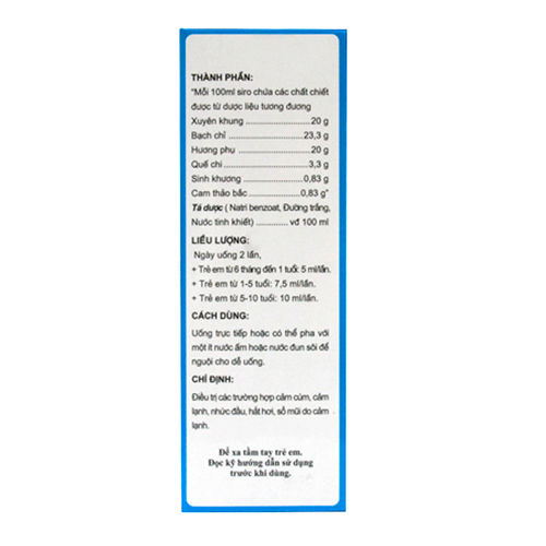 Hoạt chất - Hàm lượng | Xuyên khung, Bạch chỉ, Hương phụ, Quế nhục, Can khương, Cam thảo mộc |