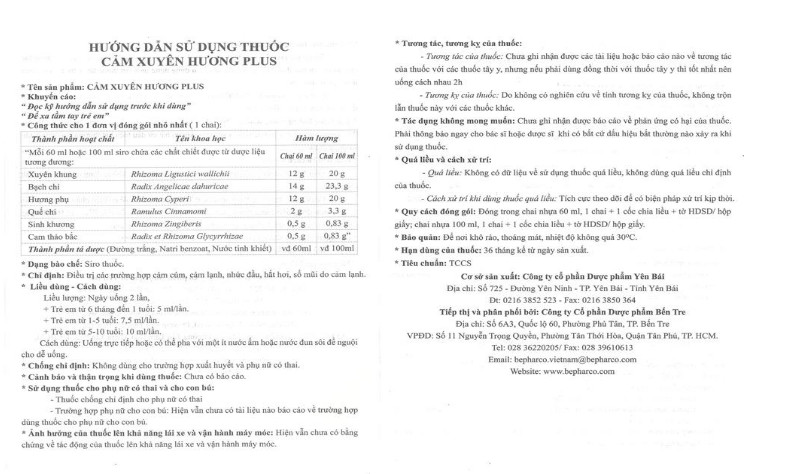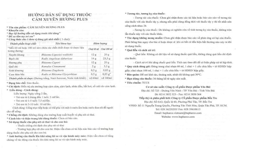 Hoạt chất - Hàm lượng | Xuyên khung, Bạch chỉ, Hương phụ, Quế chi, Sinh khương, Cam thảo bắc |