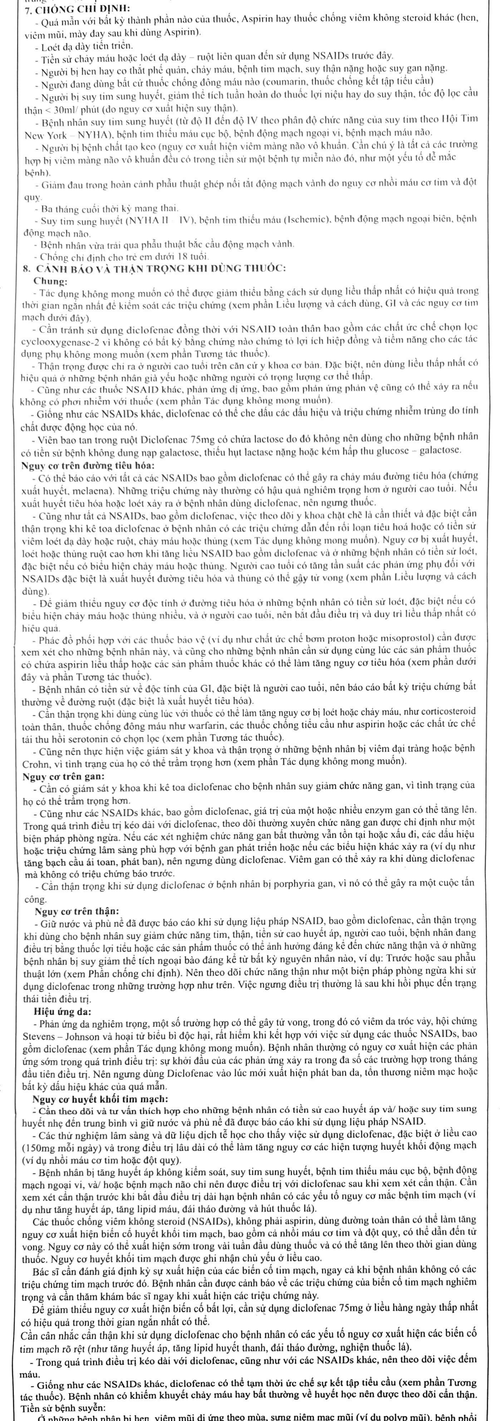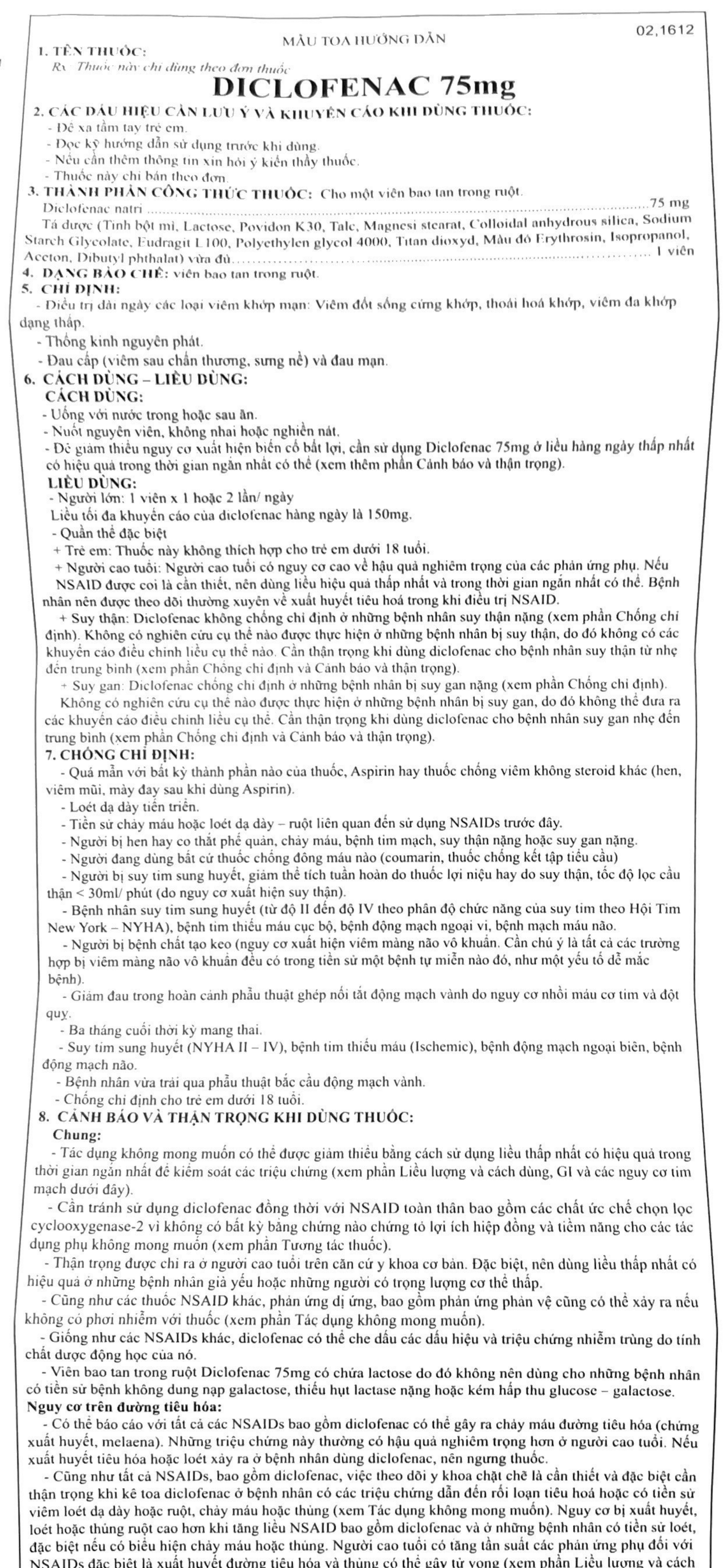 | Hoạt chất - Hàm lượng: | Diclofenac natri 75 mg |