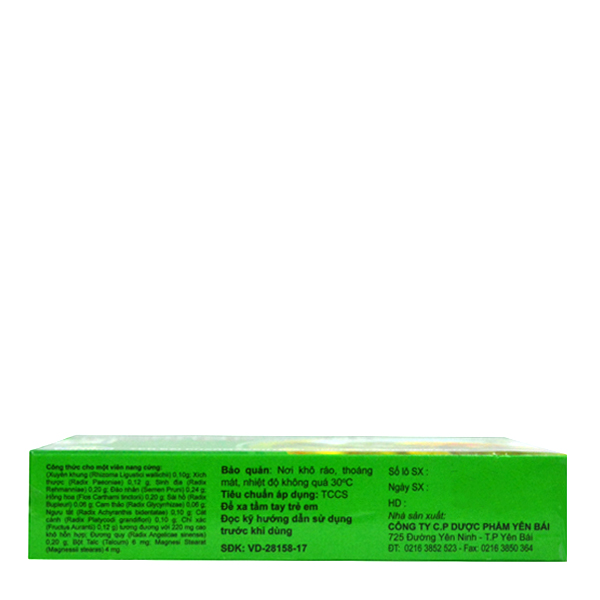 Hoạt chất - Hàm lượng | Xuyên khung, Xích thược, Sinh địa, Đào nhân, Hồng hoa, Sài hồ, Cam thảo, Ngưu tất, Cát cánh, Chỉ xác |