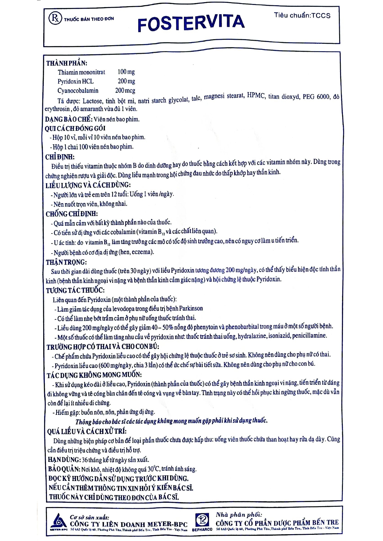 | Hoạt chất - Hàm lượng: | Thiamin Mononitrat 100 mg Pyridoxin HCL 200 mg Cyanocobalamin 200 mcg |