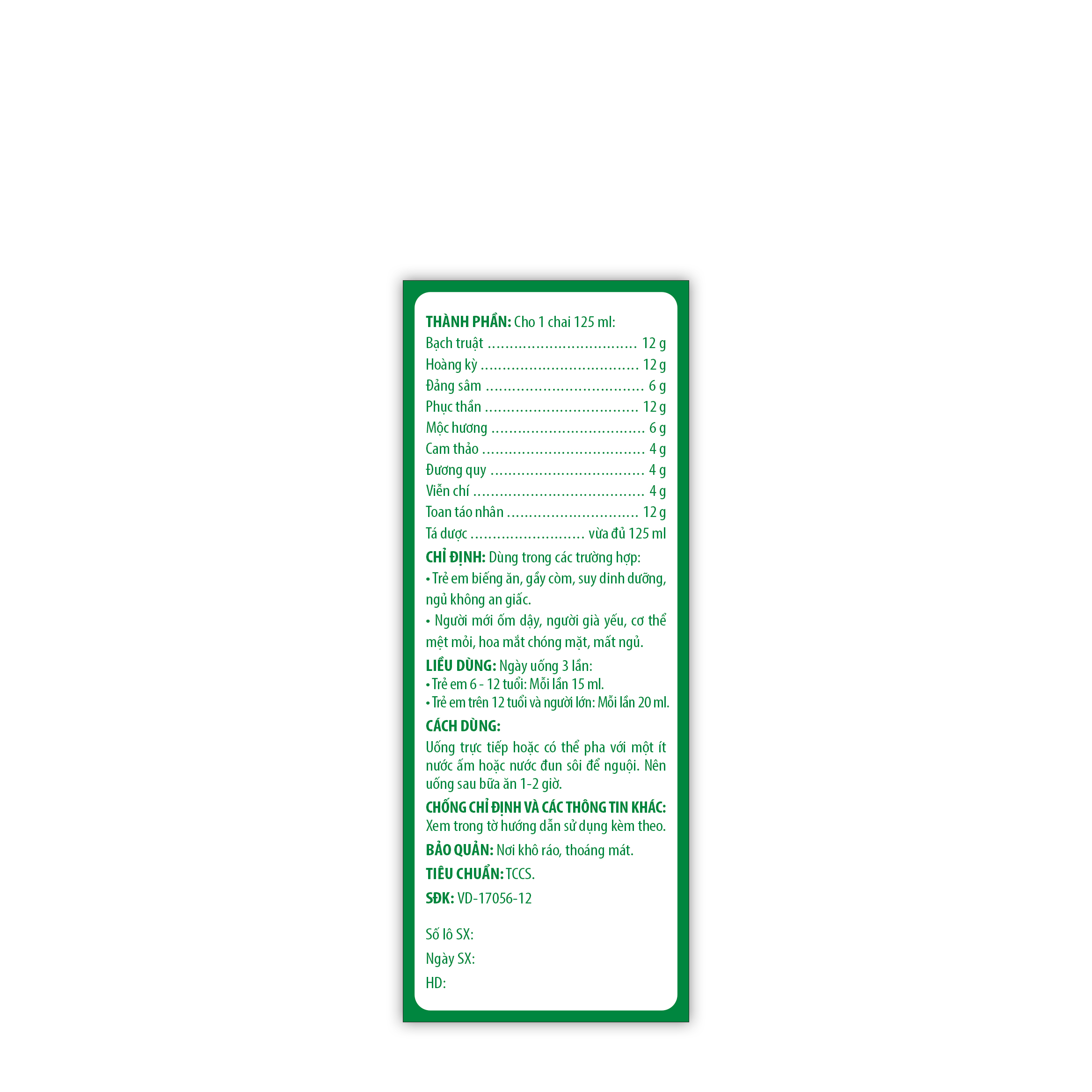 Kích thích tiêu hóa, ngủ ngon, phục hồi sức khỏe cho trẻ biếng ăn, suy dinh dưỡng, người mới ốm dậy, già yếu, mệt mỏi, mất ngủ.