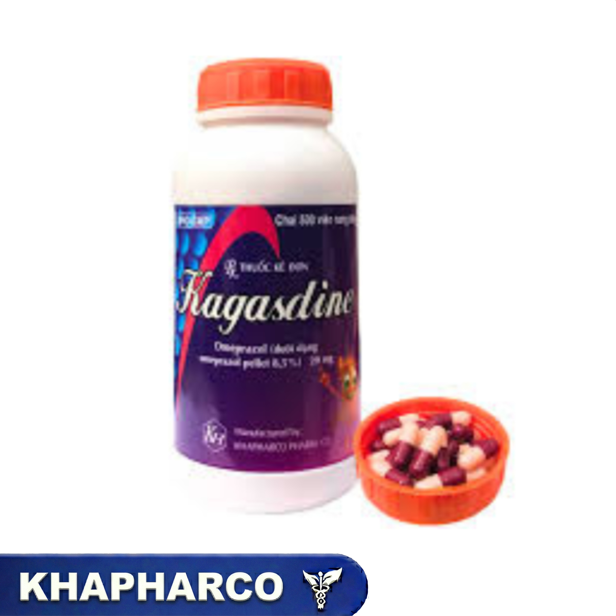 Thuốc Kagasdine 20mg Khapharco (Chai/500 Viên Nang) là thuốc có thành phần chính là Omeprazol, một chất giúp giảm tiết acid trong dạ dày, được dùng trong điều trị các bệnh lý liên quan đến đường tiêu hóa như loét dạ dày, tá tràng, trào ngược dạ dày thực quản, hội chứng Zollinger-Ellison và có thể dùng để dự phòng loét do stress hoặc thuốc chống viêm không steroid. Thuốc được bào chế dưới dạng viên nang cứng, tan trong ruột và được đóng gói theo quy cách chai 500 viên.