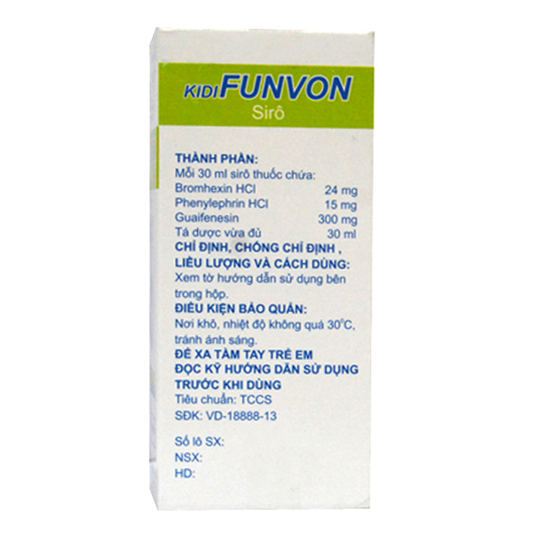 Hoạt chất - Hàm lượng | Mỗi 5 ml siro chứa: Bromhexin HCl 4 mg Phenylephrin HCl 2,5 mg Guaifenesin 50 mg |