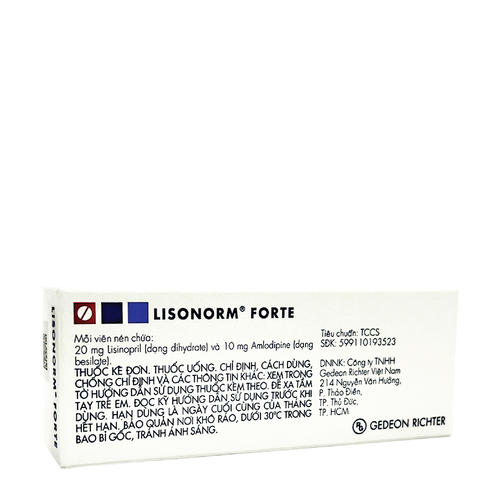 Hoạt chất - Hàm lượng | Lisinopril 20 mg Amlodipin 10 mg |