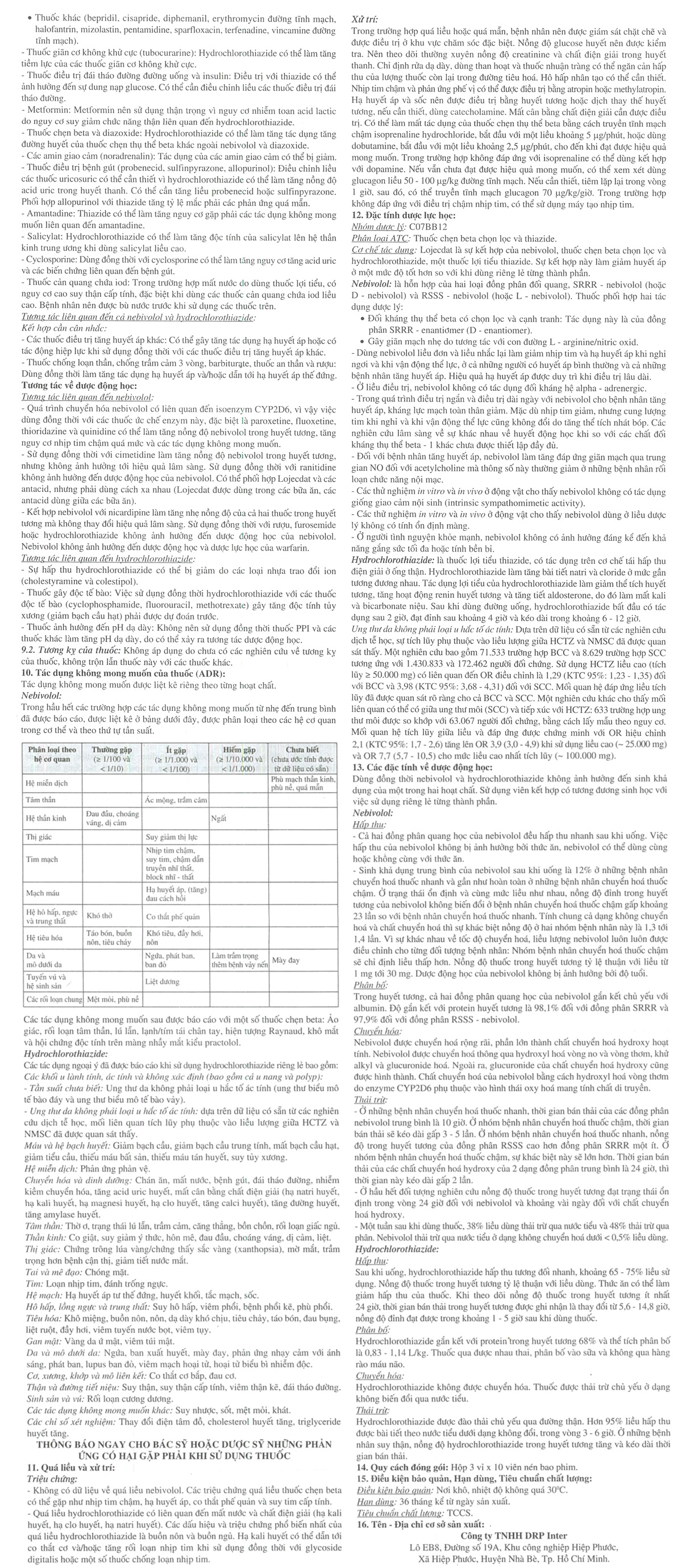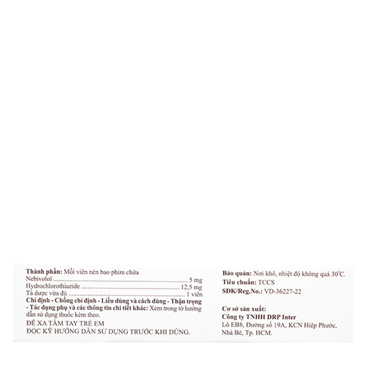 Hoạt chất - Hàm lượng | Nebivolol 5 mg / hydrochlorothiazide 12,5 mg |