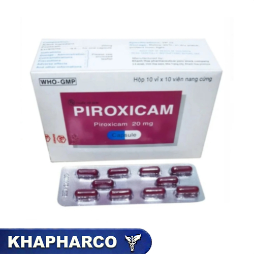Piroxicam 20mg KH (H/100v) là thuốc dạng viên nang, mỗi viên chứa 20mg hoạt chất Piroxicam, được sử dụng để giảm đau và kháng viêm, đặc biệt trong các bệnh lý về cơ xương khớp như viêm khớp dạng thấp, viêm xương khớp và viêm cột sống dính khớp. Thuốc này có tác dụng giảm đau nhanh sau khi uống và có thể ổn định trong vòng 4-13 ngày tùy thuộc vào tình trạng bệnh.