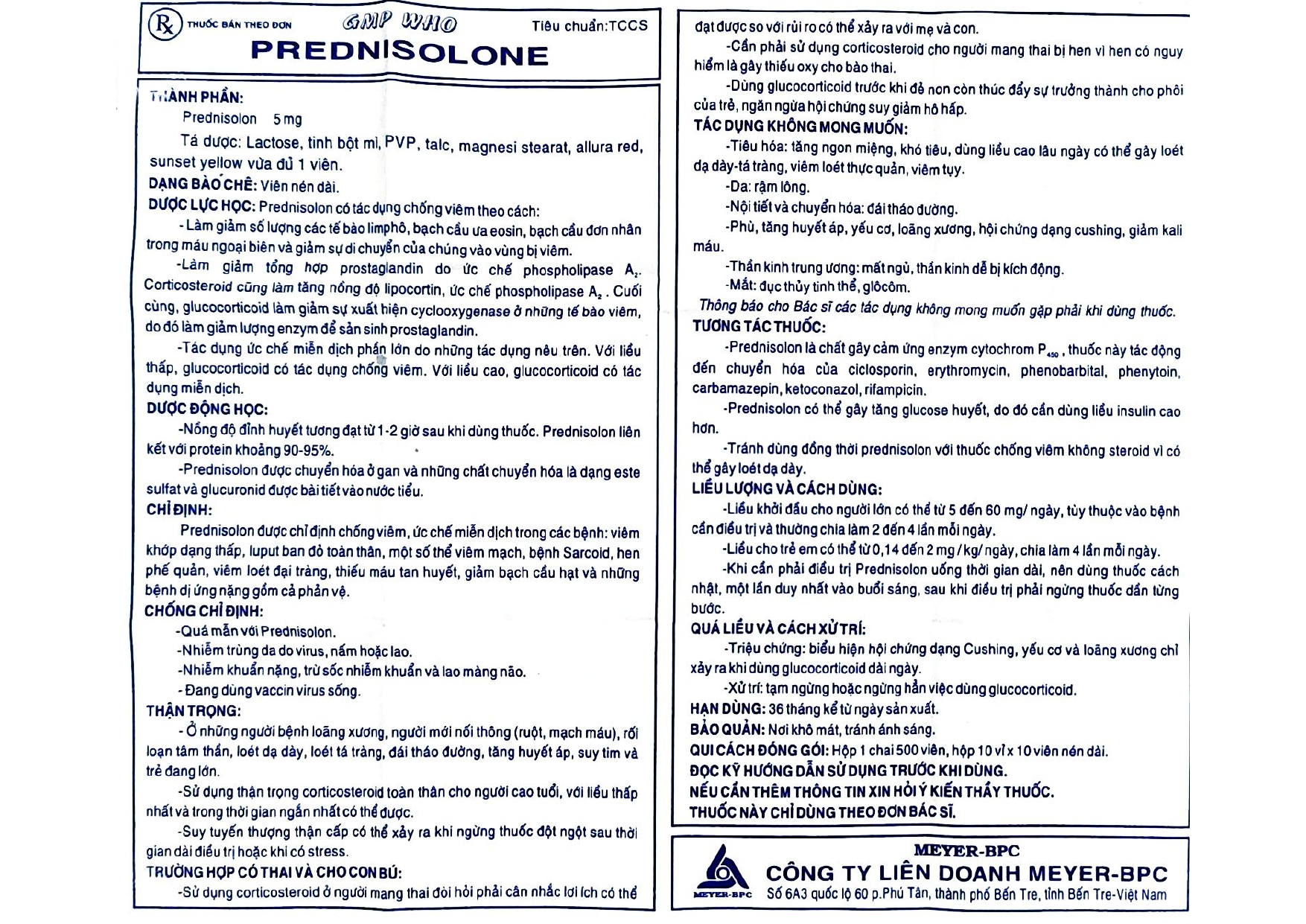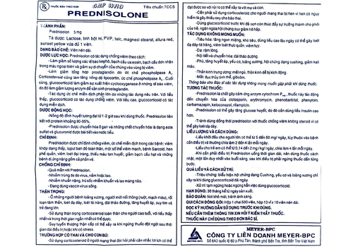 | Hoạt chất - Hàm lượng: | Prednisolone 5 mg |