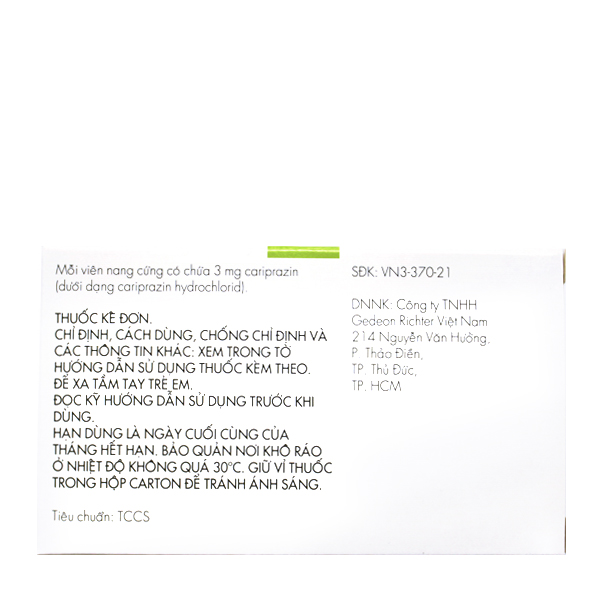 Hoạt chất - Hàm lượng: Cariprazin 3 mg