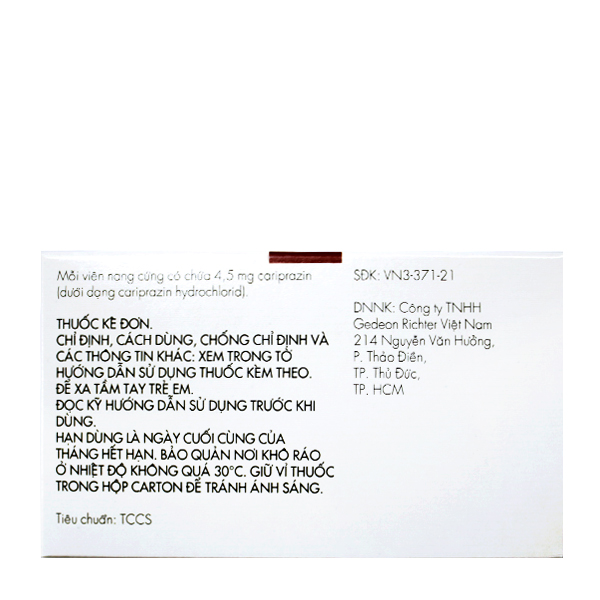 Hoạt chất - Hàm lượng: Cariprazin 4.5 mg