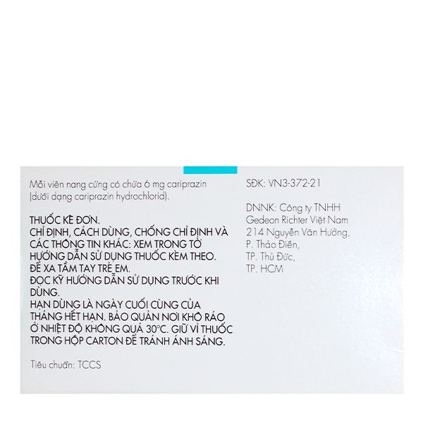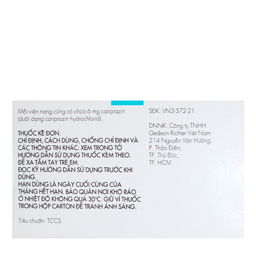 Hoạt chất - Hàm lượng: Cariprazin 6 mg