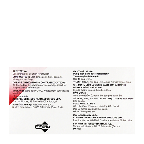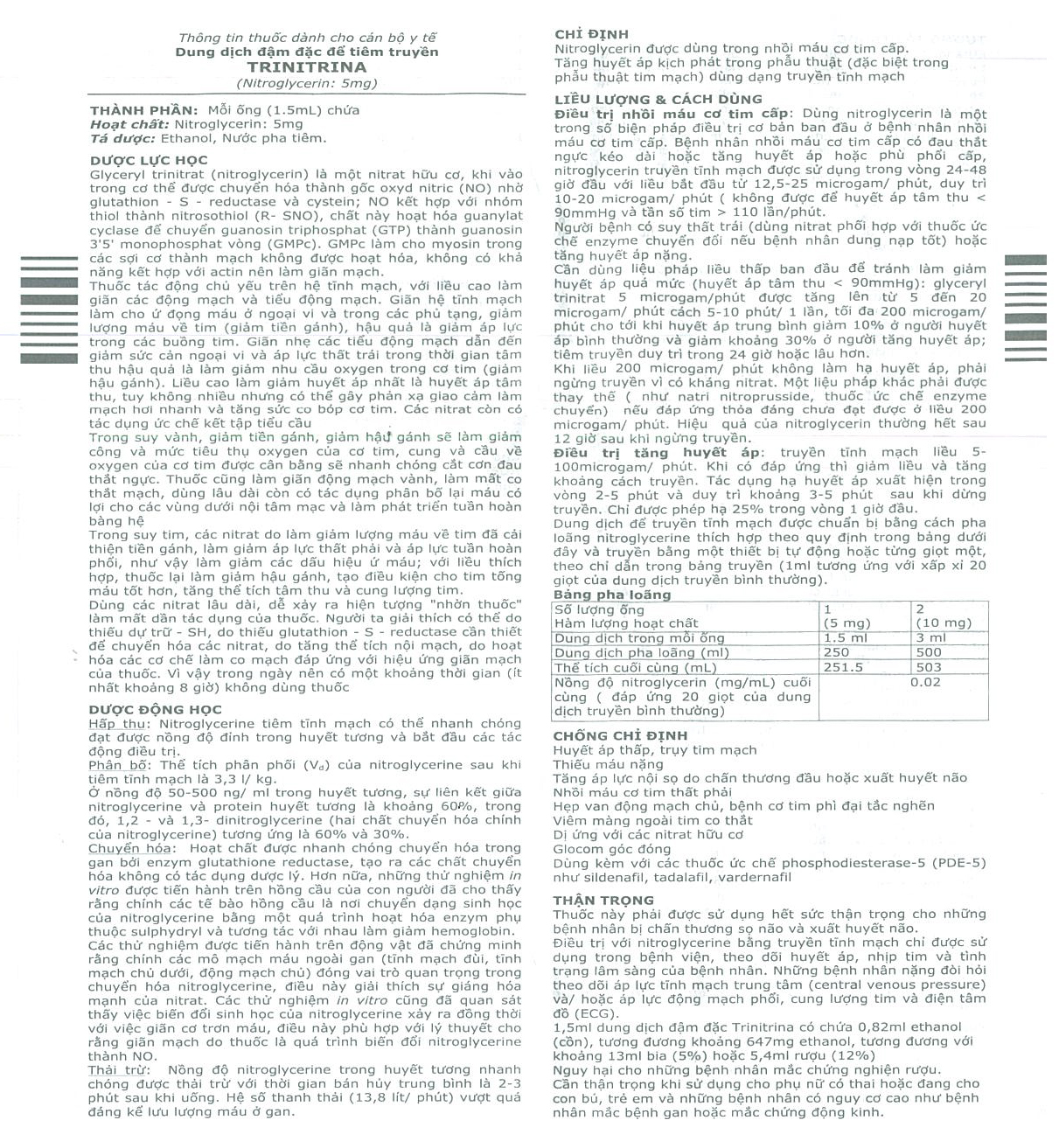 Thành phần - hàm lượng: Nitroglycerin 5 mg | |