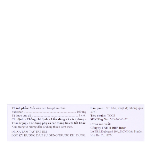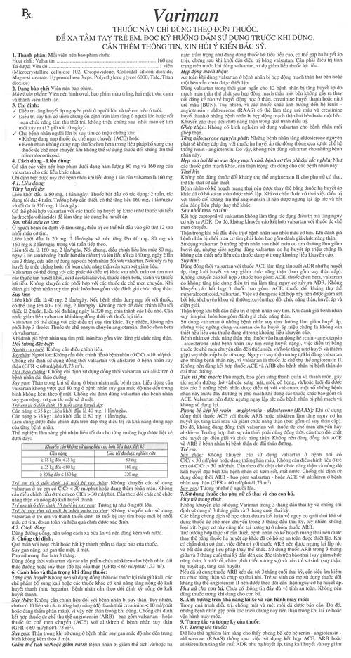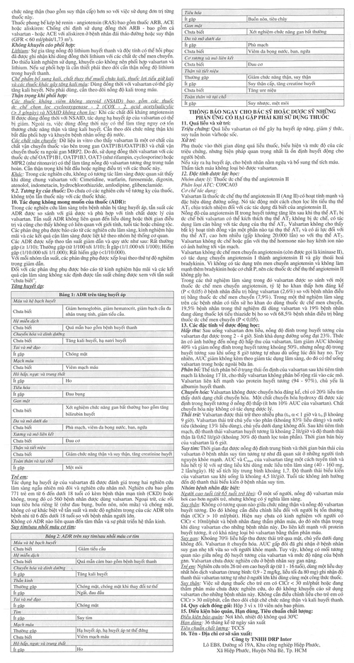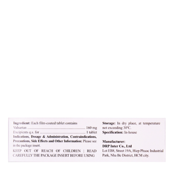 Hoạt chất - Hàm lượng | Valsartan 160 mg |