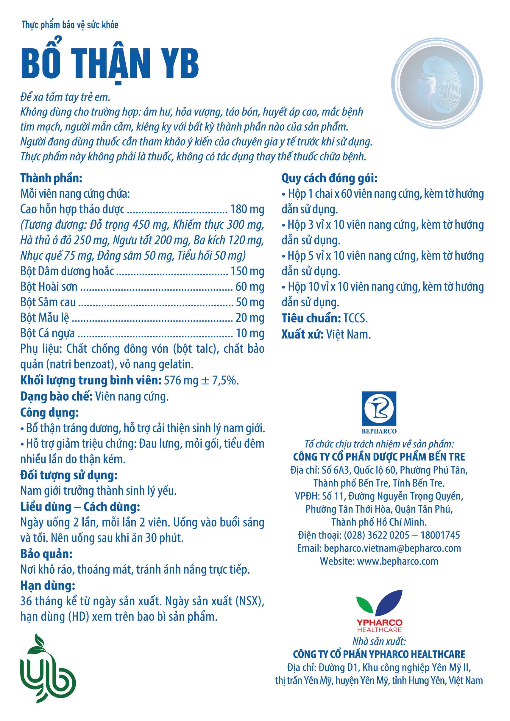 | Hoạt chất - Hàm lượng | Mỗi viên nang cứng chứa: Cao hỗn hợp thảo dược 180 mg. (Tương đương: Đỗ trọng 450 mg, Khiếm thực 300 mg, Hà thủ ô đỏ 250 mg, Ngưu tất 200 mg, Ba kích 120 mg, Nhục quế 75 mg, Đảng sâm 50 mg, Tiểu hồi 50 mg). Bột Dâm dương hoắc 150mg. Bột Hoài sơn 60mg. Bột Sâm cau 50mg. Bột Mẫu lệ 20mg. Bột Cá ngựa 10mg. Phụ liệu: Chất chống đông vón (bột talc), chất bảo quản (natri benzoat), vỏ nang gelatin. |
