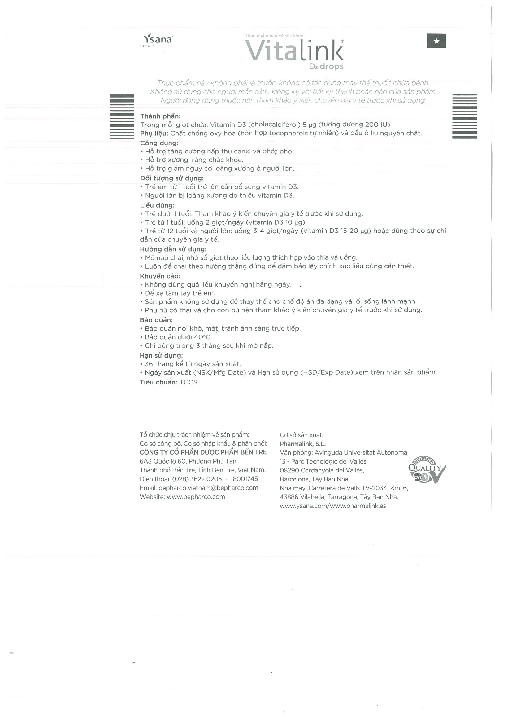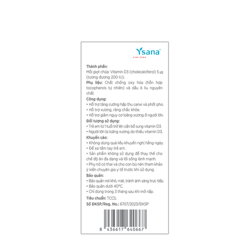 Hoạt chất - Hàm lượng: Trong mỗi giọt chứa: Vitamin D3 (cholecalciferol) 5 µg (tương đương 200 IU).